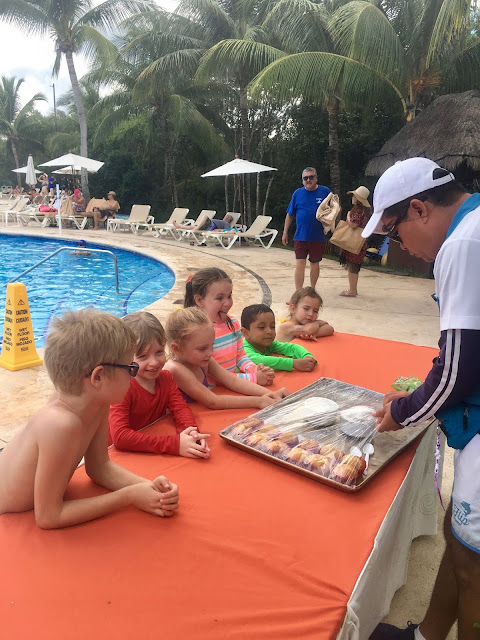 Normalement, Nicolas et moi ne participons pas beaucoup aux activités de l'hôtel, car nous partons en excursions ou faisons nos propres affaires, mais avec Julianne qui participait beaucoup aux activités du Club des Enfants, nous nous sommes retrouvés à faire de l'aérobic aquatique (Katrine), du volleyball ( nous deux) et du waterpolo (Nicolas). J'ai fait des cours de zumba et de danse (pas de surprise ici!), j'ai appris à faire des animaux avec des serviettes (je ne me souviens plus comment faire!) et à faire du guacamole. Notre segment préféré au bord de la piscine chaque jour était "Todo puede suceder" ("Tout peut arriver"). Il s’agissait généralement de faire de l’aérobic aquatique, mais nous adorions l’expression "Tout peut arriver" et nous avons décidé de l’utiliser plus souvent dans notre vie quotidienne ("Que mange-t-on pour le dîner? Tout peut arriver!"). Nous avons appris à connaitre les animateurs: ils m'ont surnommé "Mamí", "Mamita" ou "Mamacita" et ils ont surnommé Nicolas "Papí". Nous avons repris certaines expressions de Darwin, qu'il utilisait lors des matchs de volleyball en piscine, telles que "WHAAAAAT?" et "Wakey wakey!". Ah, les petites choses en vacances nous rendent heureux...